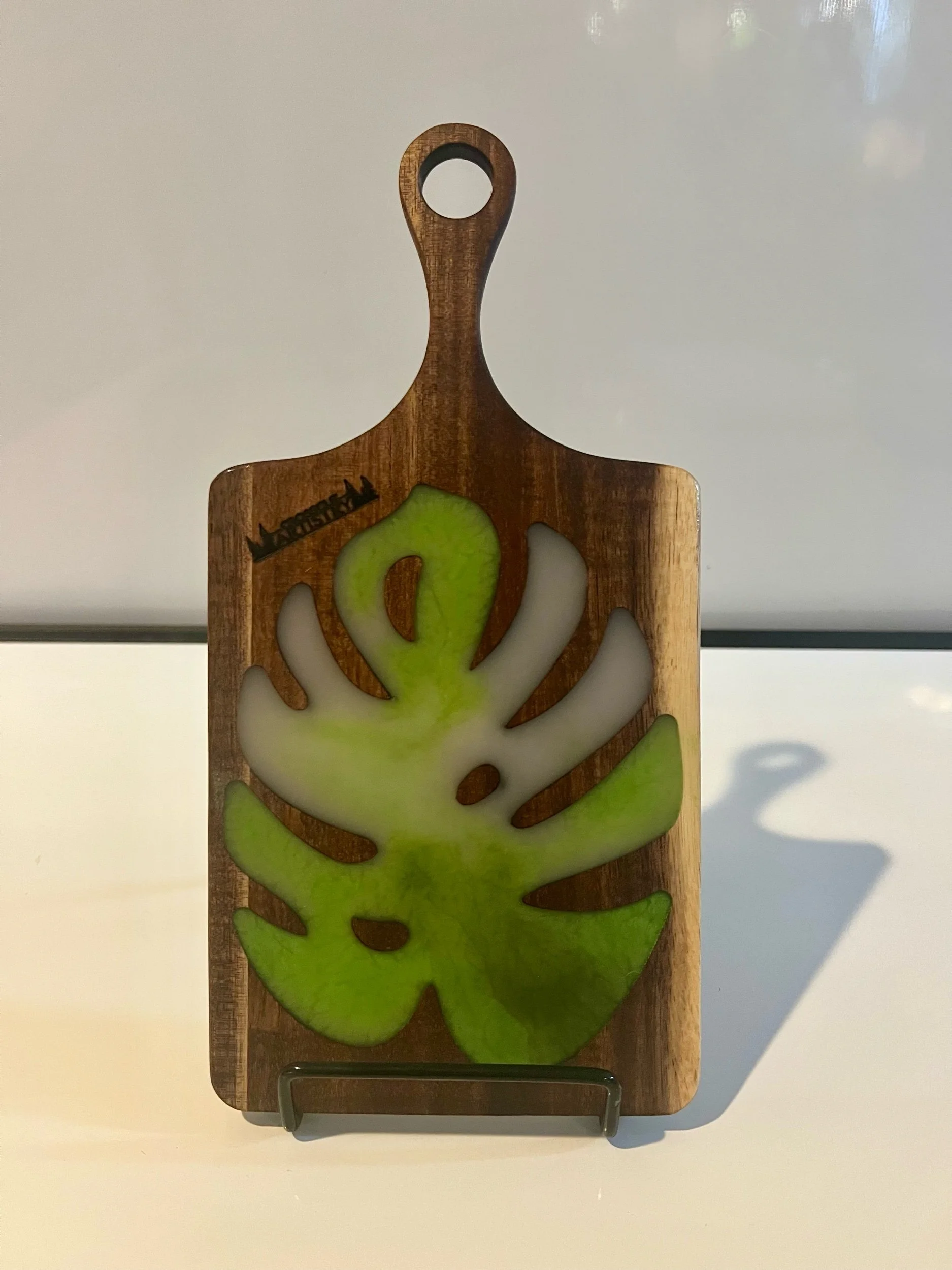 Every board is hand-poured and unique — no two resin leaves ever swirl the same.